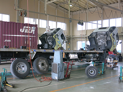 自社車両の点検整備はもとより、外部車の点検、民間車検、車両整備も行います。自社車両は特殊車両、専用車両も多いため、自社内で輸送設備の品質保証を行うことで、物流サービスの品質向上にもつながります。